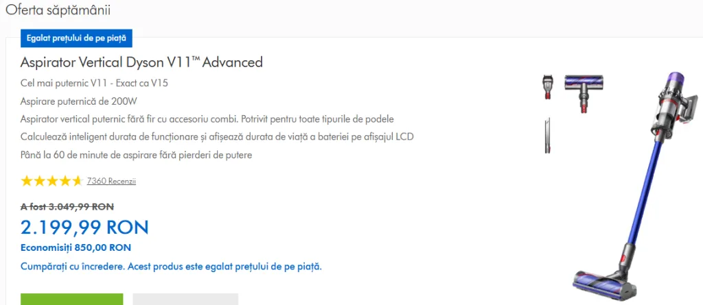 - Reducere de pana la 750 lei la Aspirator Dyson V15.