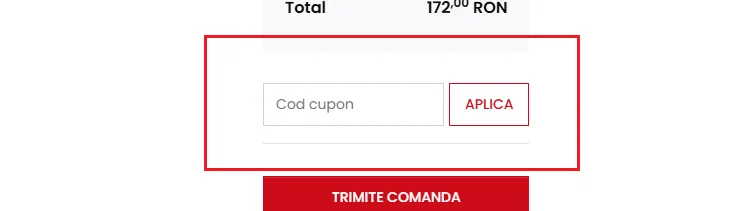 Intri pe site, alegi produsele preferate si le adaugi in cos. La pasul de finalizare a comenzii, vei vedea un camp special denumit “cod voucher” sau “cod reducere”. Acolo trebuie sa introduci codul exact cum l-ai primit (fara spatii aditionale) si sa apesi pe butonul de aplicare.