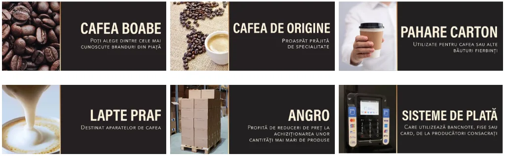 Daca ai un aparat de cafea sau esti in cautarea unuia nou, sectiunea aparate e pentru tine. Espressoare automate, traditionale, automate pentru cafea si snack, dar si mobilier sau autocolante pentru personalizare. Totul pare gandit cu grija pentru afaceri de orice dimensiune.