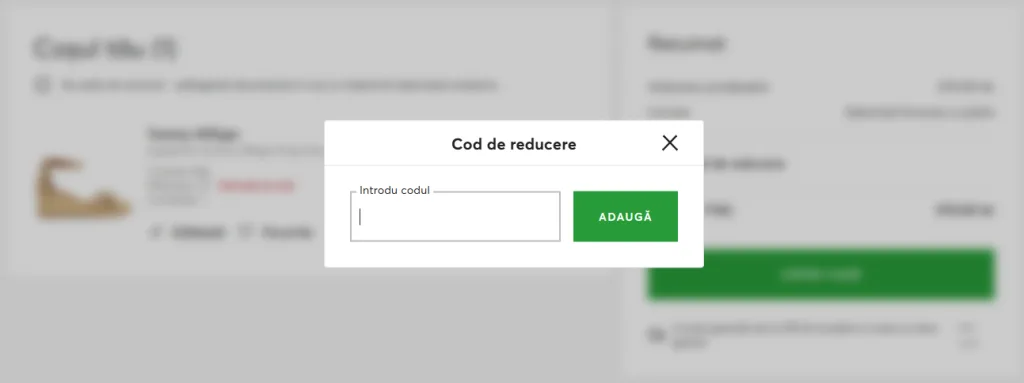 Sub lista cu articolele, ai un camp dedicat pentru “Cod voucher” sau “Cod promotional”.